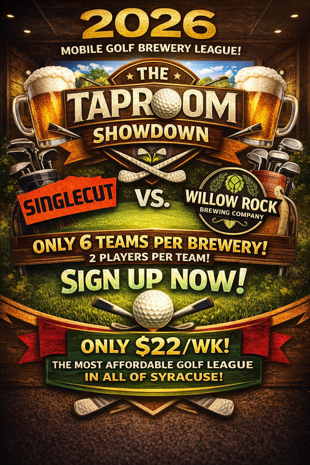 This league is comprised of 12, two person teams hosted at two of Syracuse's favorite breweries. The league starts January 26th and runs for 8 weeks of regular season play, with a playoff between the top team from each brewery (click on the poster for all rules).Click on one of the participating breweries below to register to represent your brewery; each player must register. Regular season game play will be hosted at the brewery you register under.